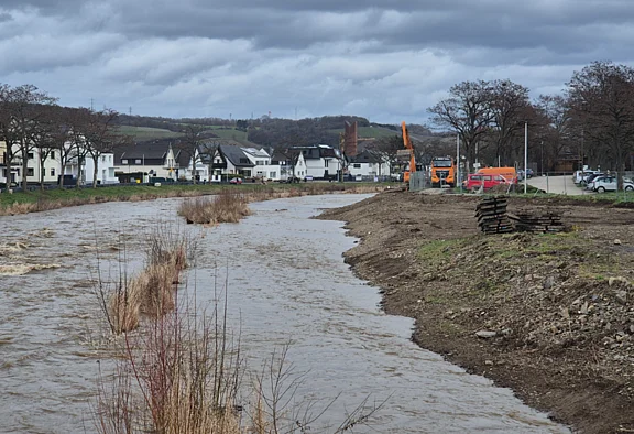 Bereits beim leichten Hochwasser der vergangenen Tage zeigte sich ein erster positiver Effekt der Aufweitung: Die Ahr verfügt nun über deutlich mehr Abflussraum, was zu einer erkennbaren Absenkung der Wasserlinie beiträgt, und die Hochwasserdynamik verbessert.