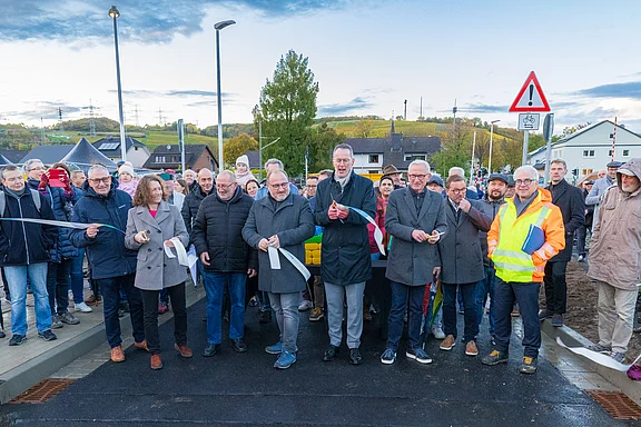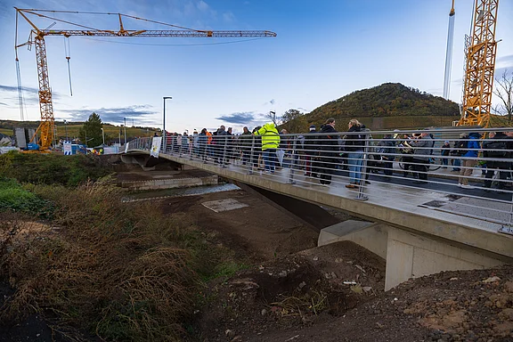 Bei der offiziellen Eröffnung überzeugten sich zahlreiche Gäste aus Lokalpolitik und Gesellschaft sowie Landrätin Cornelia Weigand und der rheinland-pfälzische Innenminister Michael Ebling von der modernen und schlanken Gestaltung der nun fertiggestellten Brücke.