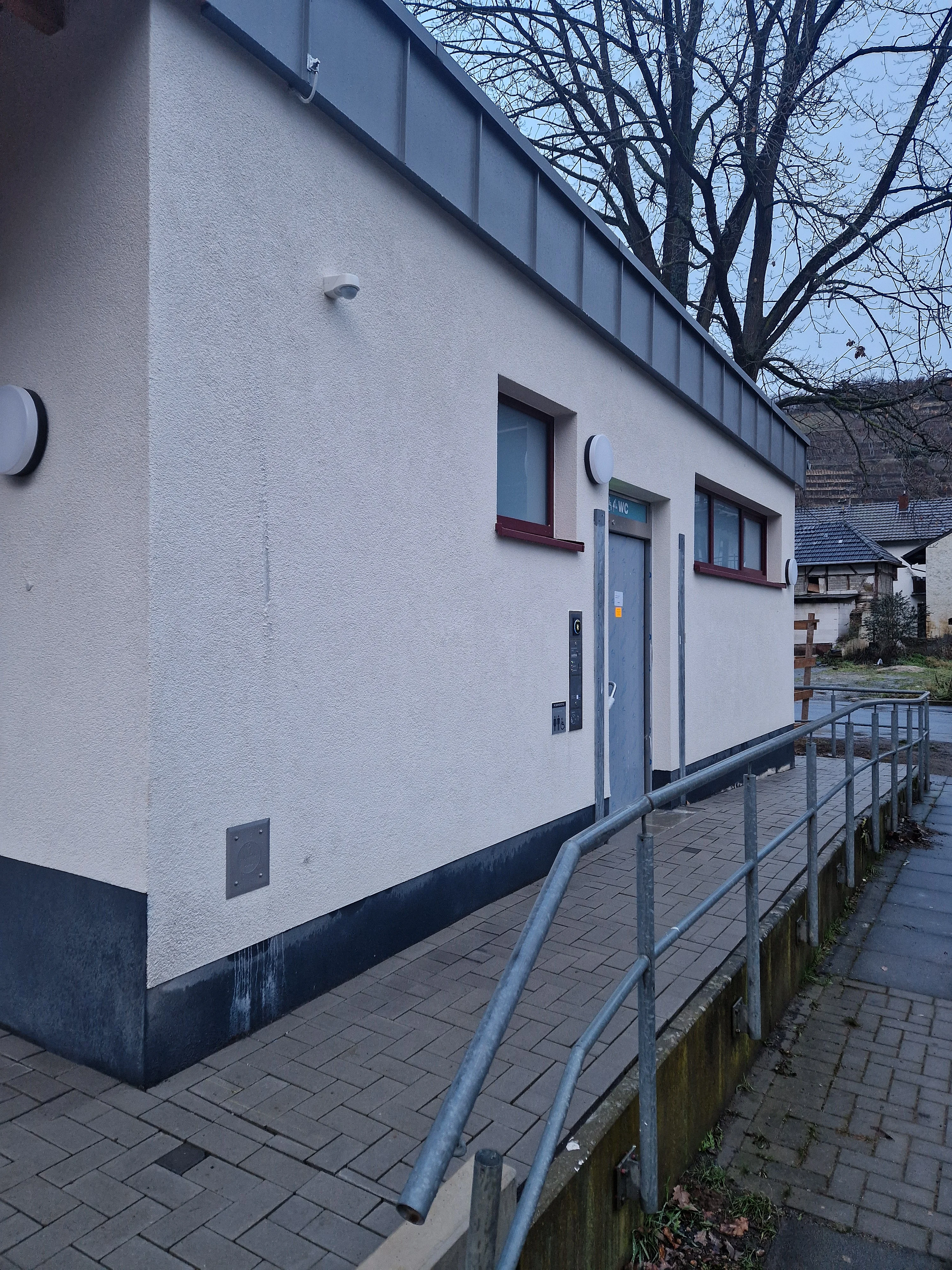 Im Gebäude des Sportlerheims, jedoch räumlich getrennt und separat von außen zugänglich, befindet sich auch ein öffentliches WC. Auch dieses ist im Betrieb.