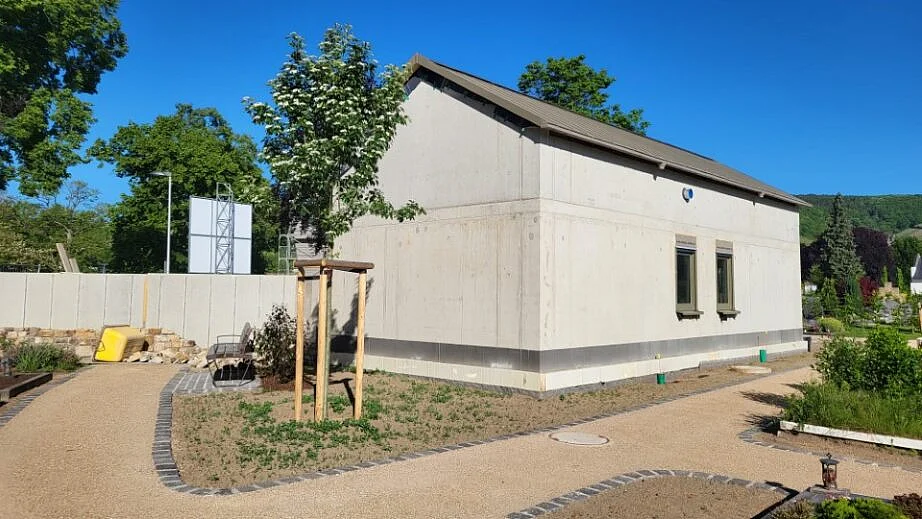 Die durch die Firma Mika Bau durchgeführten Rohbauarbeiten sind abgeschlossen. Ebenso die Arbeiten am Dachstuhl und der Dachhaut. Die Fenster und Türen wurden bereits eingebaut. Die Arbeiten im Inneren haben begonnen. Rohinstallationen für Sanitär, Heizung, Lüftung und Elektro sind abgeschlossen. Der Trockenbau wurde beidseitig beplankt und beendet. Die Hausanschlüsse wurde verlegt und Innenputz und Estricharbeiten durchgeführt. Aktuell wird die Fassade gedämmt und die Dachbegrünung vorangetrieben. Die Fliesenverlegung wurde in den öffentlichen Toiletten gestartet. Die Außenanlage ist bis auf den eigentlichen Innenhof fertiggestellt. Die Fertigstellung ist für Herbst 2025 angesetzt.