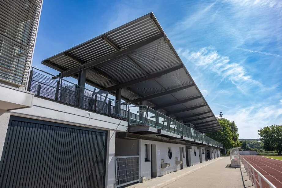 Tribüne & Sportheim: Die 8 Umkleideräumlichkeiten und Nebenräume der Tribüne und des alten Sportheims wurden unmittelbar nach der Flut bis auf den Rohbauzustand zurückgebaut. Es hat eine beschränkte Ausschreibung der Planungsleistungen mit 3 Angeboten gegeben, der Auftrag für die Sanierung beider Gebäude wurde an das Architekturbüro von Canal vergeben. Der Förderantrag wurde im Juni 2024 bei der ADD gestellt.