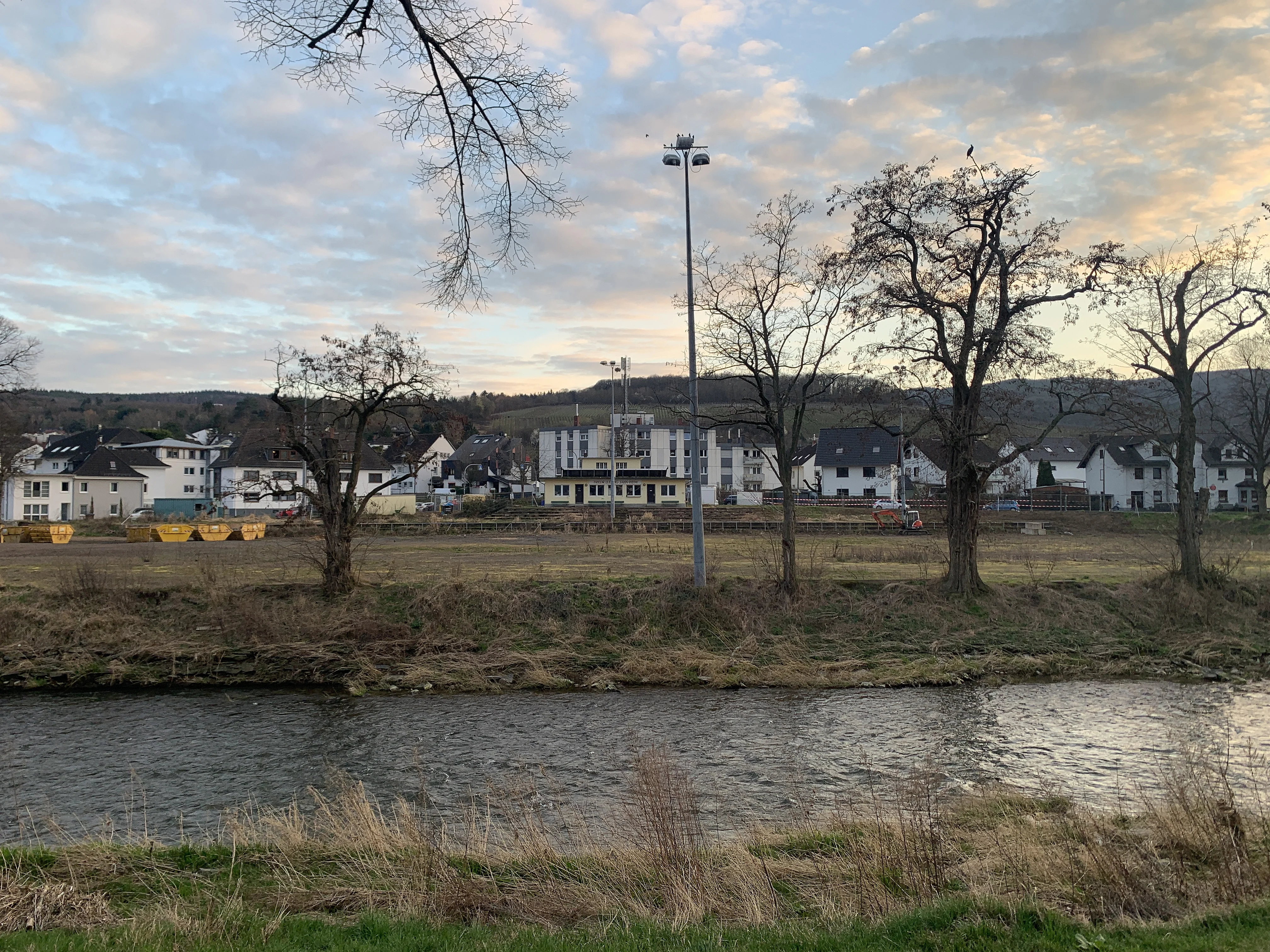 Freiraum südliches Ahrquartier: Für das südliche Ahrquartier wurde ein digitales Geländemodell in Zusammenarbeit von Gewässerplanung (BCE, Speyer) und Freiraumplanung (FÖRDER, Essen) entwickelt. Ziel ist ein bestmöglicher Abfluss der Ahr bei Hochwasser durch eine Aufweitung der Sohle und eine Tieferlegung der Vorlandbereiche. In einem iterativen Prozess zwischen Freiraum- und Gewässerplanung ist das digitale Geländemodell erarbeitet worden. Diese Geländemodellierung ist hydraulisch berechnet worden und wird aktuell hinsichtlich Vermeidung zukünftiger Hochwasserschäden genau geprüft. Das Ergebnis bildet die Grundlage für die abschließende Bearbeitung des Vorentwurfs.