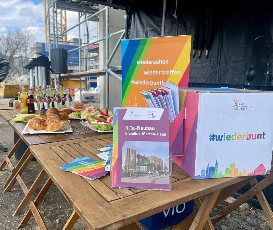 Die AuEG ist mit der Wiederherstellung der Kita Blandine-Merten-Haus in Bad Neuenahr durch die Stadtverwaltung im Juli 2022 beauftragt worden. Das Bestandsgebäude war bereits Ende 2021 im Auftrag der Gesellschaft abgerissen worden, als nach gutachterlicher Einschätzung klar war, dass es als wirtschaftlicher Totalschaden zu betrachten sei.
