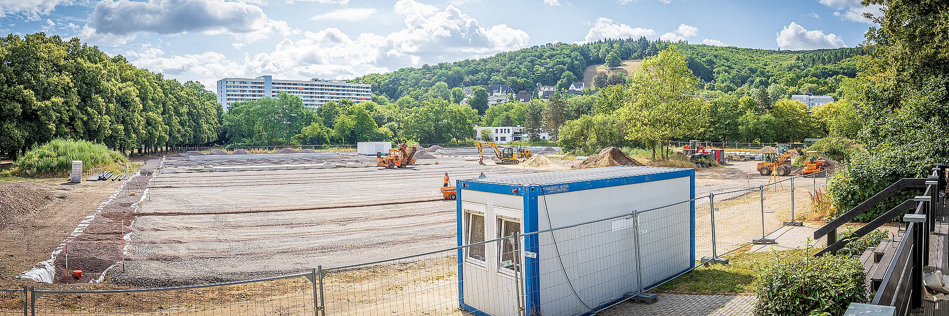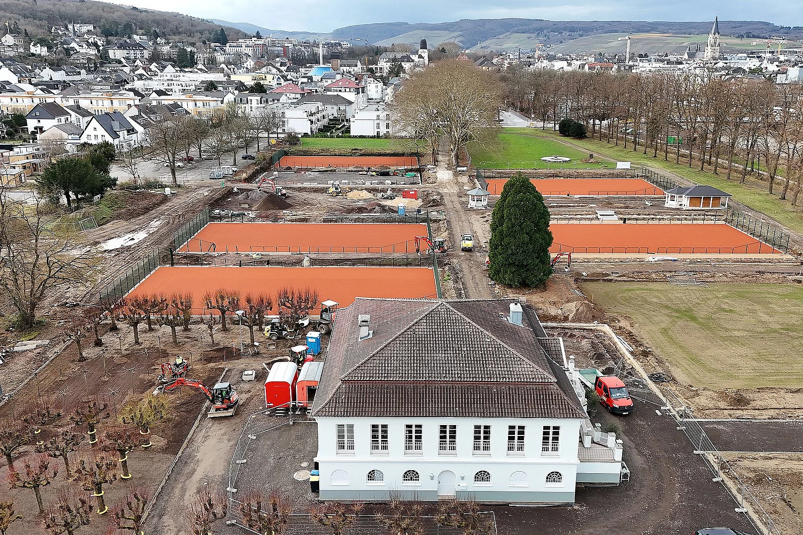 Erster Bauabschnitt: Die AuEG ist mit der Wiederherstellung von 6 Tennisplätzen durch die Stadt Bad Neuenahr-Ahrweiler beauftragt worden. Die Entwurfsplanung wurde dem Stadtrat im Oktober 2022 vorgestellt und dort beschlossen. Die Baumaßnahmen für diesen ersten Bauabschnitt wurden im Frühjahr 2024 abgeschlossen. Die Anlage ist inzwischen dem Nutzer übergeben und in Betrieb. Der dazugehörige Förderantrag wurde an die ADD gestellt und bewilligt.