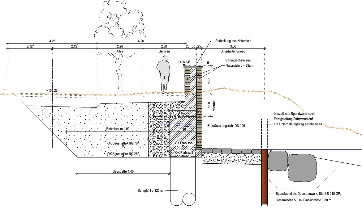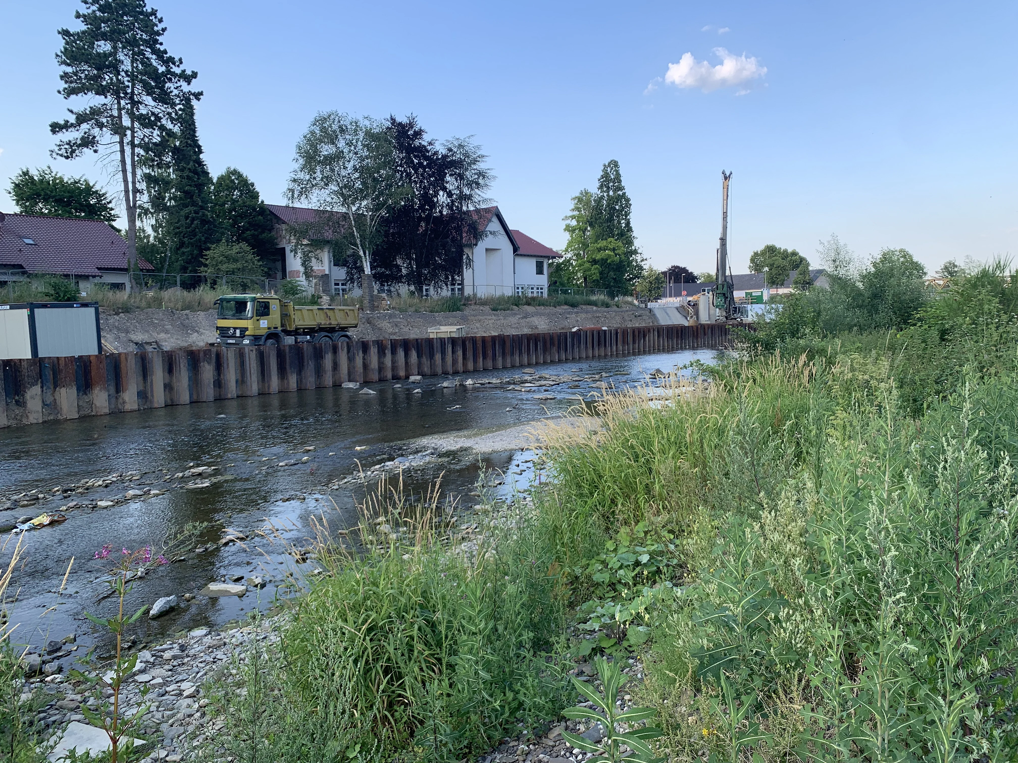 Prallwand CvE-Allee: Der Planungsauftrag für die Pralluferwand entlang der CvE-Allee wurde an die Planergemeinschaft PlannIng + Terporten (BNAW) vergeben. Die Bauleistung ist vergeben und der Baubeginn erfolgte Mitte Februar 2025. Eine Fertigstellung der kompletten Maßnahme inklusive Pralluferwand, des Straßenbaus und des neuen AZV-Kanals ist für Ende des 2. Quartals 2026 geplant. Für die Pralluferwand erfolgte bisher eine Teilbewilligung in Höhe von 2.840.000,00 € brutto.