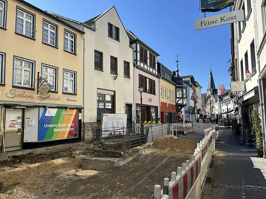 Straßen: Die bauliche Umsetzung in der Niederhutstraße hat planmäßig begonnen. Der erste Bauabschnitt ist bis auf Restarbeiten fertiggestellt, und die Fahrbahn im zweiten Bauabschnitt ist bereits gelegt. Aktuell konzentrieren sich die Arbeiten auf den dritten Bauabschnitt. Neben der Kanalwiederherstellung und dem Straßenbau, die größtenteils in Kleinmengen und abschnittsweise erfolgen, um die Erreichbarkeit der Altstadt kontinuierlich zu gewährleisten, werden zusätzliche Infrastrukturarbeiten durchgeführt. Die Ahrtalwerke erneuern die Mittel- und Niederspannungsstromleitungen und das Wasserwerk tauscht die Wasserschieber aus. Diese zusätzlichen Maßnahmen sind entscheidend für die umfassende Modernisierung der Infrastruktur.