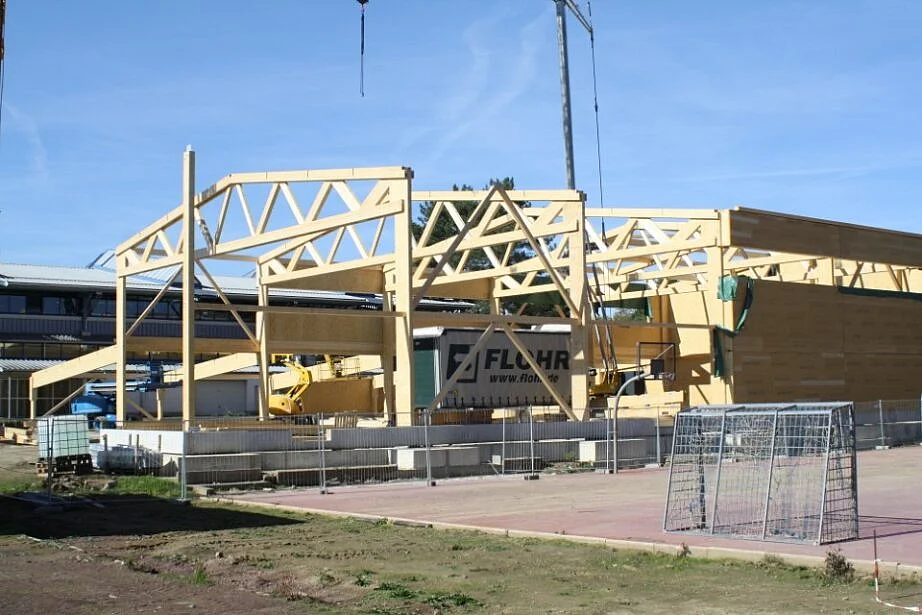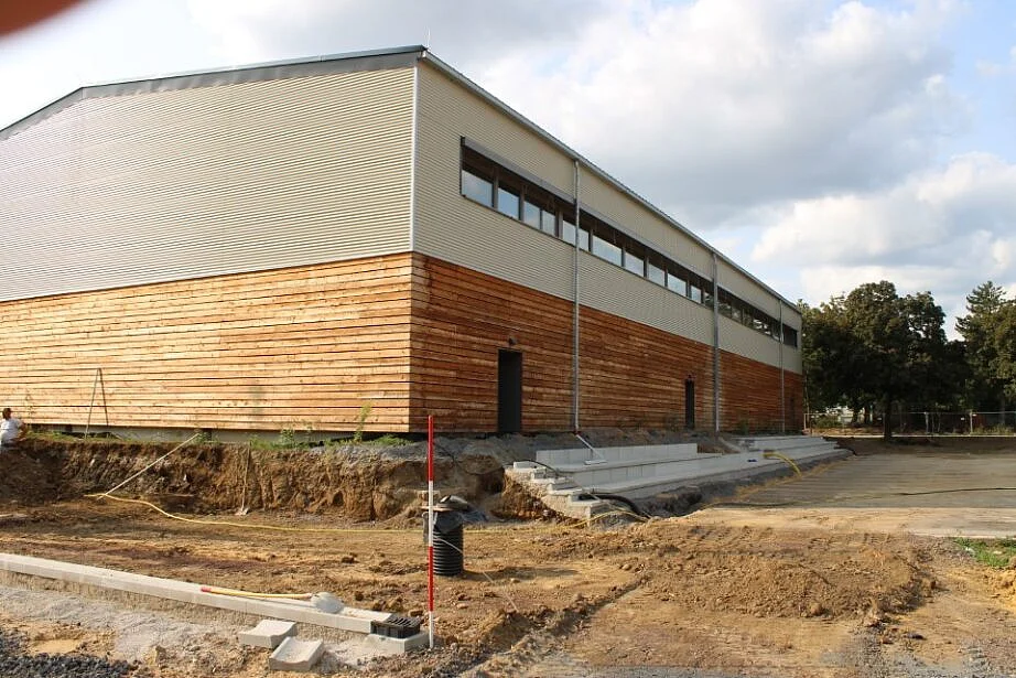 Die Stadt Bad Neuenahr-Ahrweiler beauftragte die AuEG mit der Errichtung einer temporären Sporthalle in Bachem. Das Objekt ist baulich fertiggestellt und wurde im Mai 2024 dem Nutzer übergeben. Restarbeiten wurden, ebenso der Schlussverwendungsnachweis, bis Ende Mai 2025 fertiggestellt.