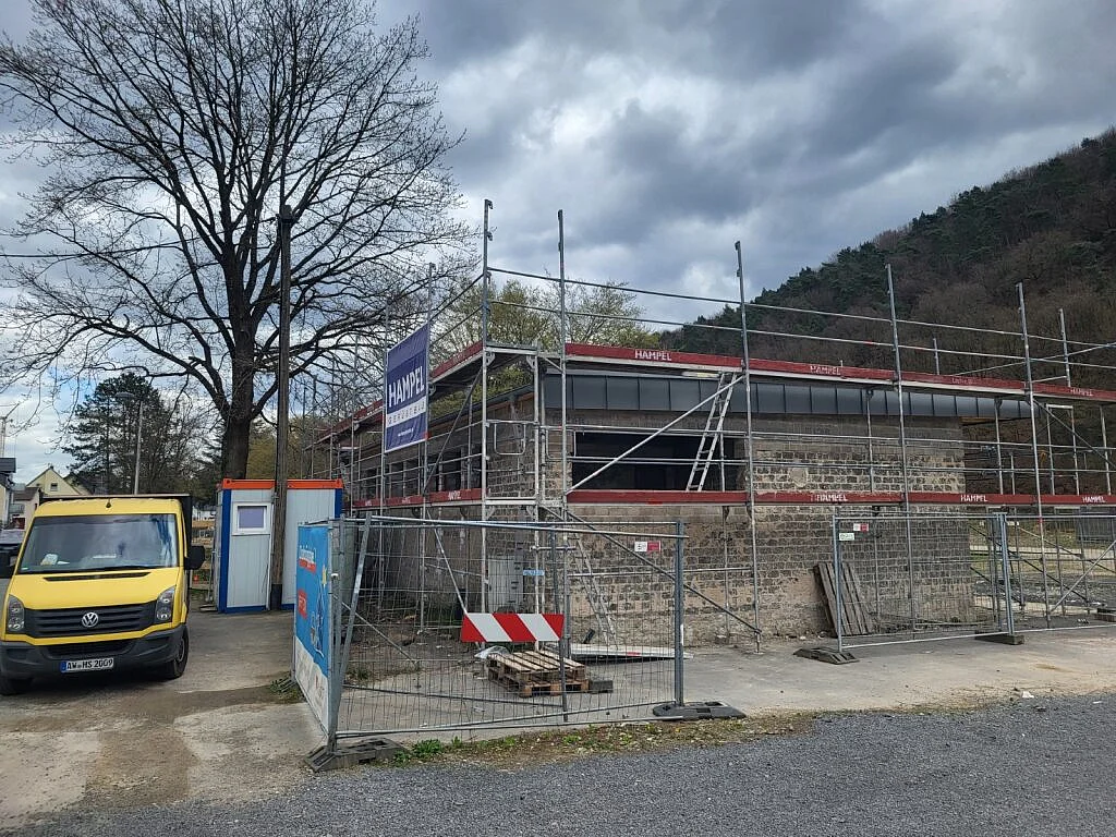 Die statische Bewertung des Gebäudes ergab, dass sowohl Deckenplatte als auch Attika stark beschädigt und einsturzgefährdet sind. Sicherungsmaßnahmen in Form einer Notabstützung der Decke und der Umzäunung des Gebäudes folgten und das Gebäude wurde entkernt. Die Kosten wurden ermittelt und der Förderantrag anschließend im Juli 2024 an die ADD gestellt. Die Bewilligung wurde am 19. November 2024 erteilt.